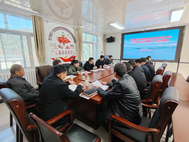 为切实加强生态护林员管理,促进管护责任落实,全面做好莲花山保护区森林资源管护工作,根据管护中心党委考核工作安排,2025年11月18日—19日,由中心党委委员、副主任张星利同志带队,组织人事科、生态工程管理科、资源管理科负责人及生态工程管理科工作人员组成考核小组对全体护林员进行2025年工作实绩考核。各保护站负责人及职工参加会议,全体生态护林员考核述职。
