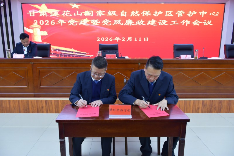 会上,集中学习二十届中央纪委五次全会、省纪委十四届五次全会精神及省林草局党建暨党风廉政建设工作、基层党组织书记抓党建述职评议会议精神,通报2025年度党支部书记抓党建述职评议及党建和党风廉政建设工作目标责任书考核结果,签订2026年度党建和党风廉政建设工作目标责任书,党委专职副书记、纪委书记张星利作纪检工作报告,党委书记、主任王学福以“坚持不懈纵深推进全面从严治党 以高质量党建引领莲花山保护区高质量发展”为题作报告。